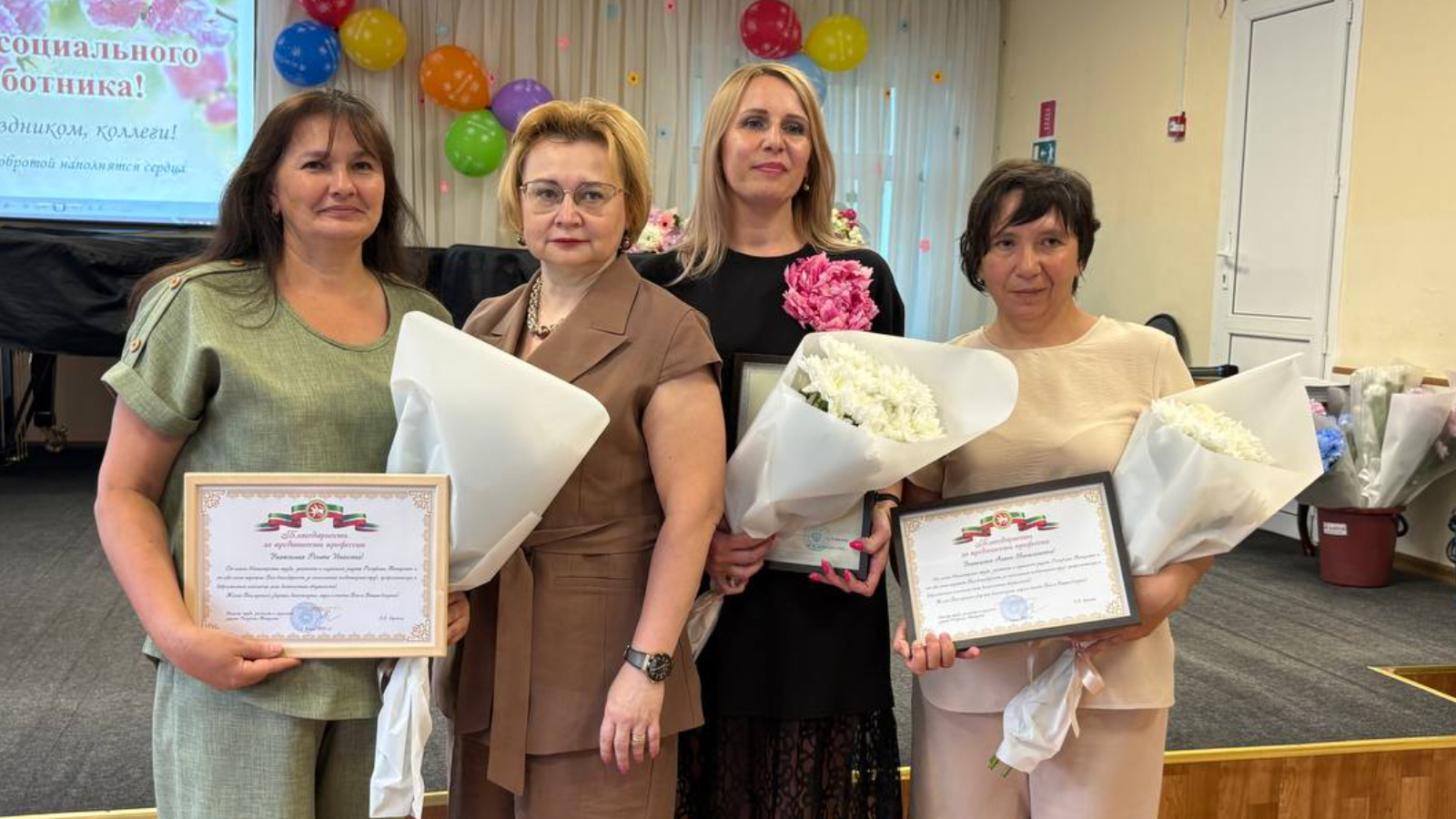 Лениногорск районы социаль учреждениеләре хезмәткәрләре ведомство бүләкләре алдылар. Мәдәният идарәсе барысын да матур сәнгать номерлары белән сөендерде.