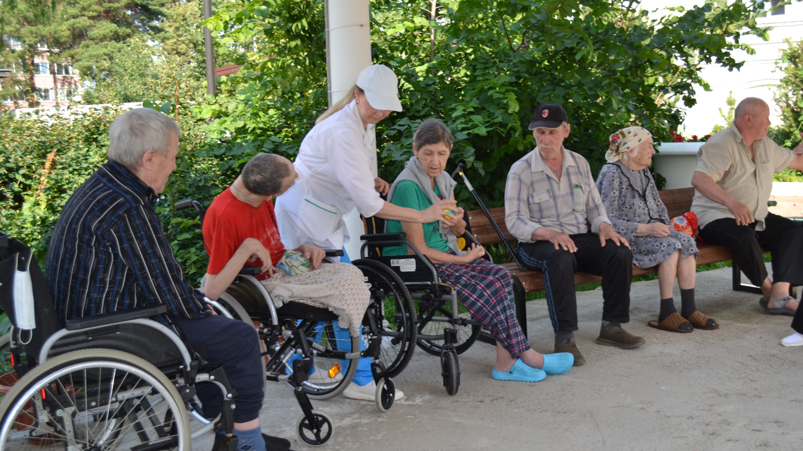 Алабуга өлкәннәр һәм инвалидлар интернат-йорты даими рәвештә иганәчеләр һәм хәйриячеләрдән ярдәм ала. Июль аенда учреждениегә районның иң эре предприятиеләренең берсе – «Август-Алабуга» ҖЧҖ хәйрия ярдәме күрсәтте.