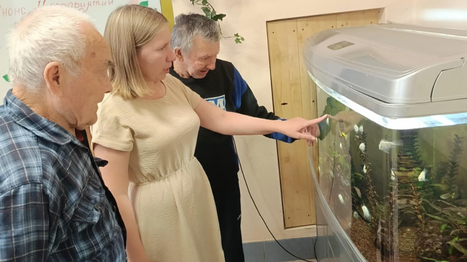 Җәлил өлкәннәр һәм инвалидлар интернат-йортында тернәкләндерү методикалары исемлеге даими рәвештә яңа һәм мавыктыргыч юнәлешләр белән тулылана. Шуларның берсе – аквариум балыкларын күзәтү ярдәмендә дәвалау. Бу методиканы социаль тернәкләндерү буенча белгеч Лилия Рәхимова кертә.