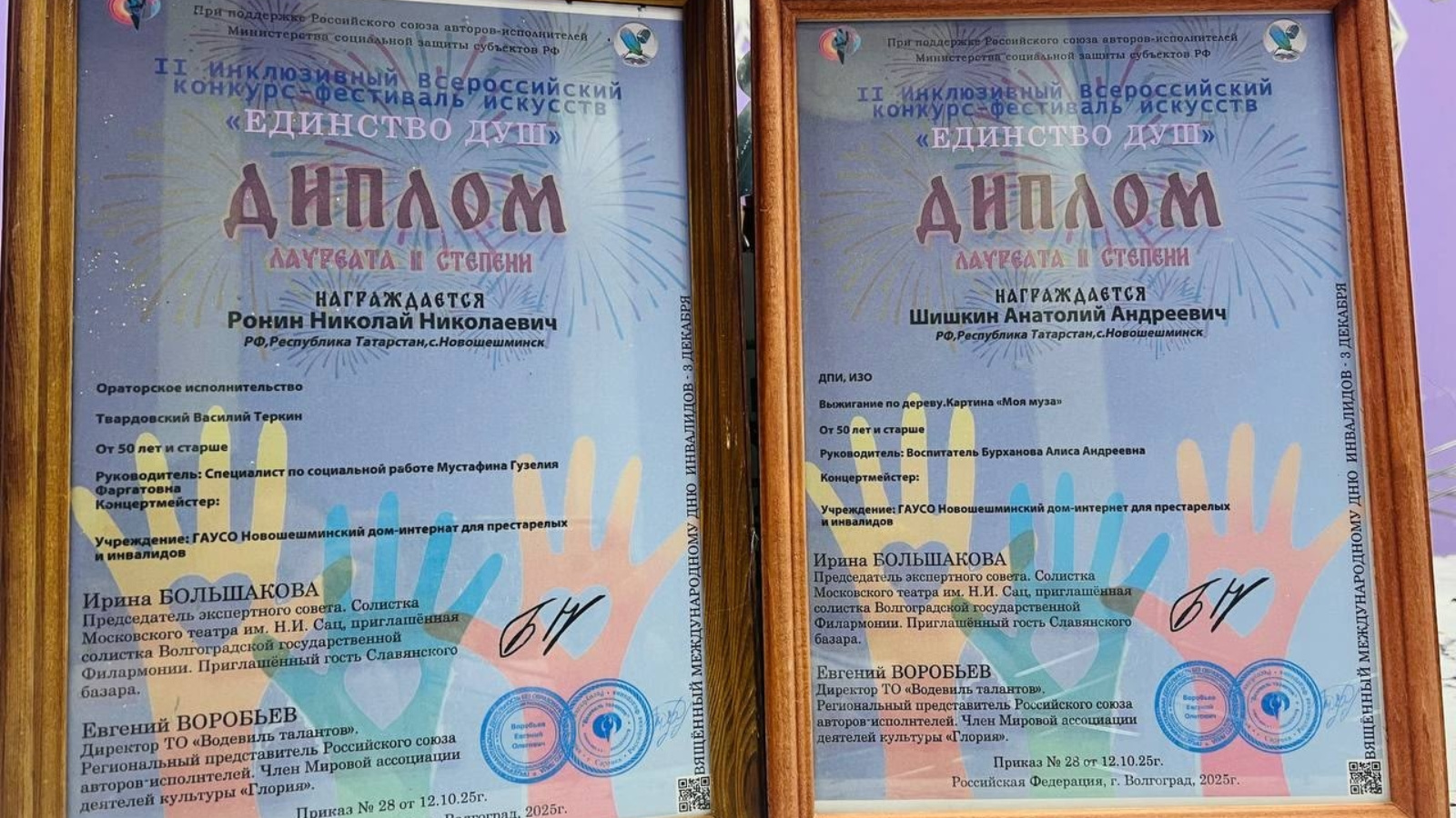 Яңа Чишмә өлкәннәр һәм инвалидлар интернат-йорты карамагындагылар II «Җаннар бердәмлеге» бөтенроссия башкару сәнгате конкурс-фестиваленең лауретлары булдылар. II дәрәҗә лауреат дипломнары белән Николай Ронин һәм Анатолий Шишкин бүләкләнделәр.