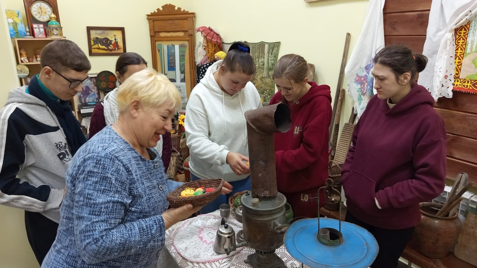 Музей җитәкчесе Галина Полякова кунаклар өчен мавыктыргыч экскурсия үткәрде, алар игътибарына төрле экспонатлар күрсәтте. Борынгы кухня кирәк-яраклары һәм авыл хуҗалыгы эш кораллары аеруча кызыксыну уятты.