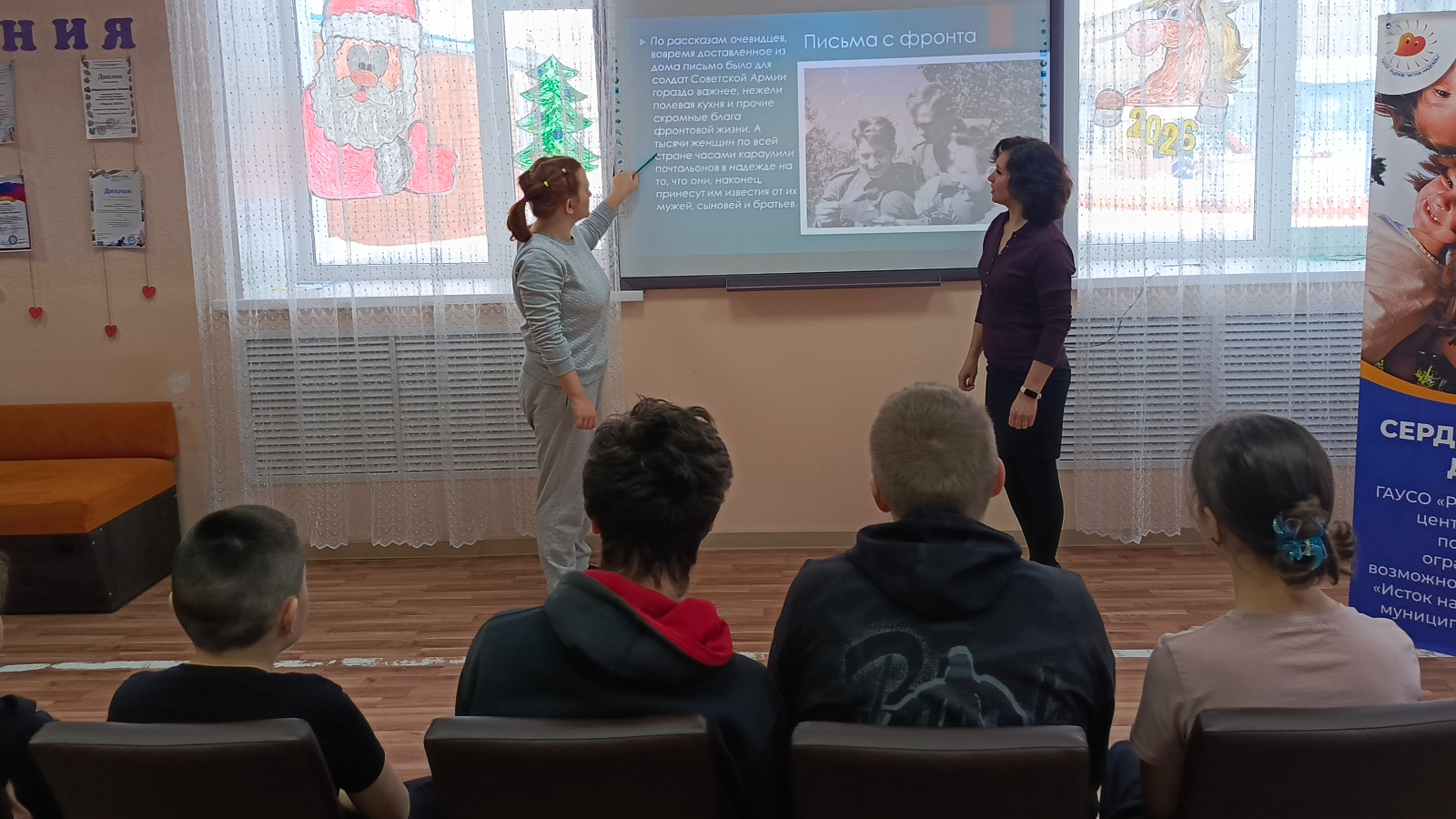 Татарстанда Хәрби батырлык һәм хезмәт фидакарьлеге елы кысаларында Арча районының «Өмет чаткысы» мөмкинлекләре чикләнгән балалар һәм яшүсмерләр өчен тернәкләндерү үзәгенең өлкән төркеме балалары белән дефектолог Инна Нурмиева «Бөек Ватан сугышы елларында хәрби почта хезмәте» дигән танып-белү чарасы үткәрде.