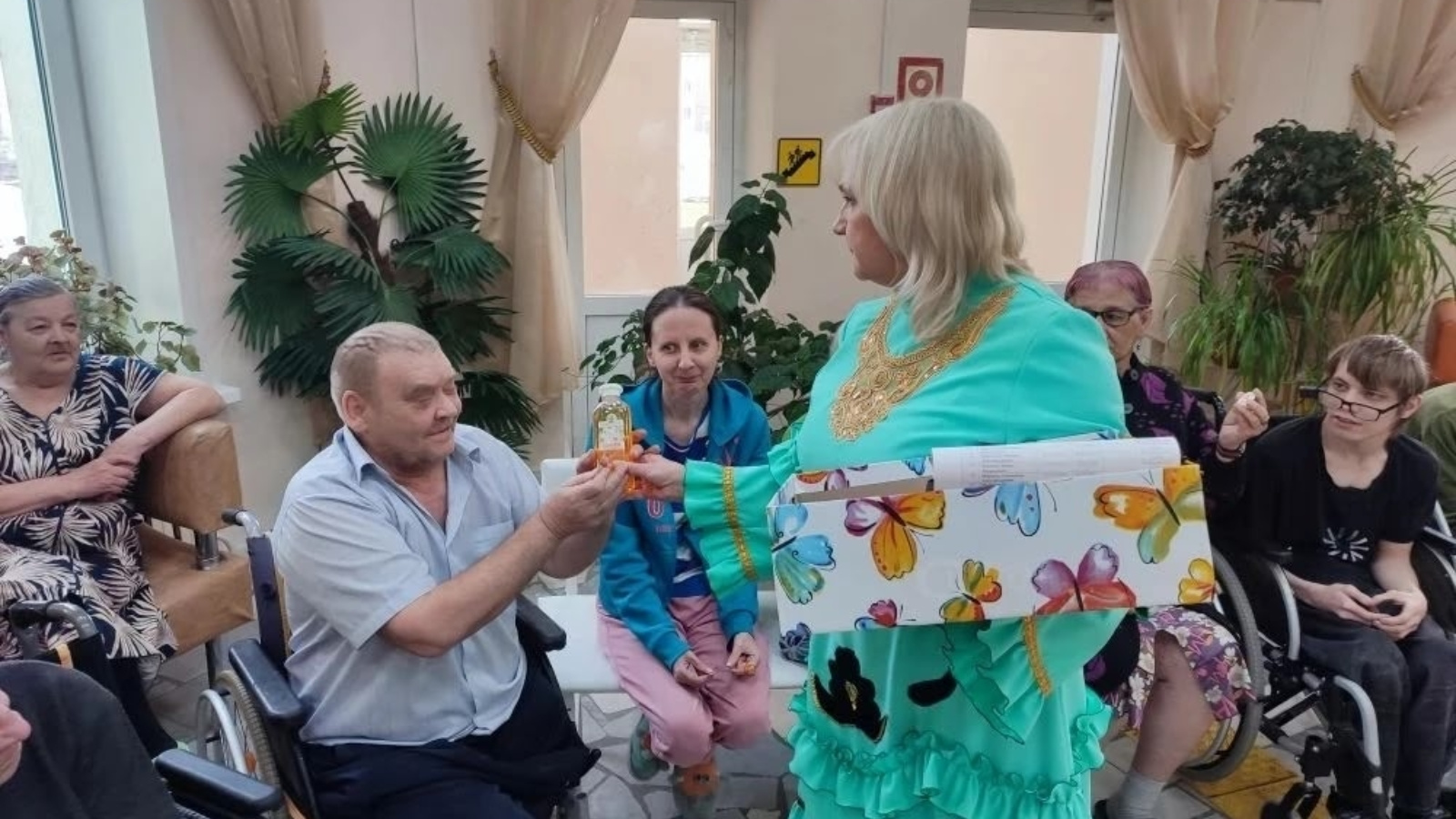 Социаль хезмәт алучылар конкурс программасында актив катнаштылар: шигырьләр укыдылар, шарларда рәсем ясадылар, оттырышсыз лотереядә катнаштылар.