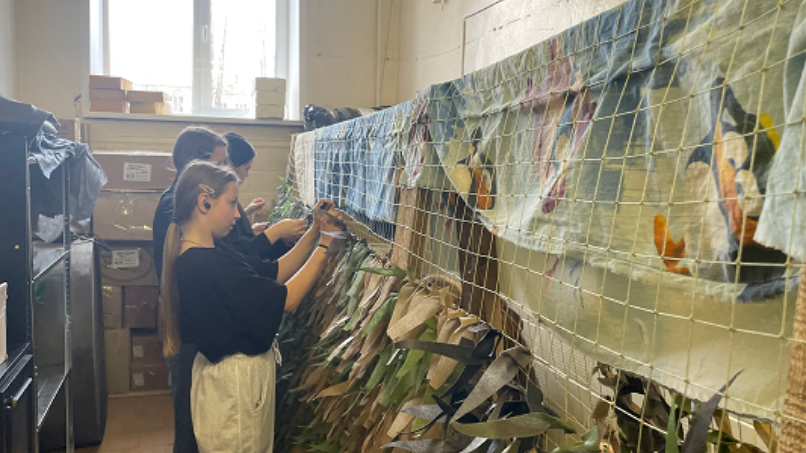 Бүген тәрбияләнүчеләр патриотик клубта булдылар. Кызлар башланган маскировка челтәрен төгәлләделәр. Ул махсус хәрби операция зонасына китәчәк.